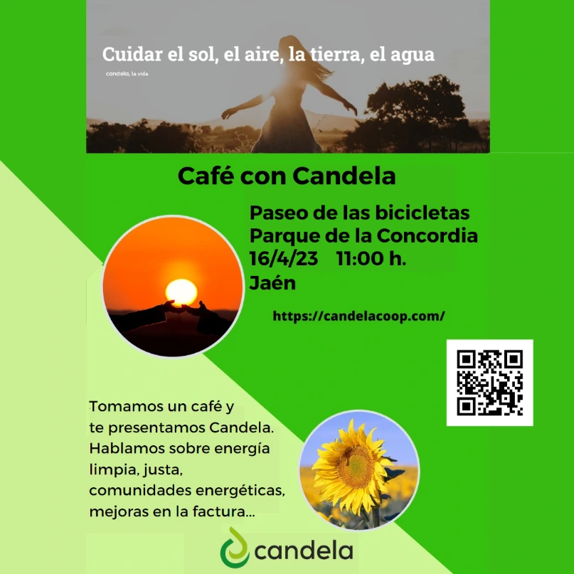 Este domingo, 16 de abril, estaremos en Jaén, en el Paseo de las Bicicletas, Parque de la Concordia, a partir de las 11:00h. Allí nos tomaremos un café y charlaremos de Candela junto a algunas personas de nuestro Consejo Rector y las personas socias de Jaén.